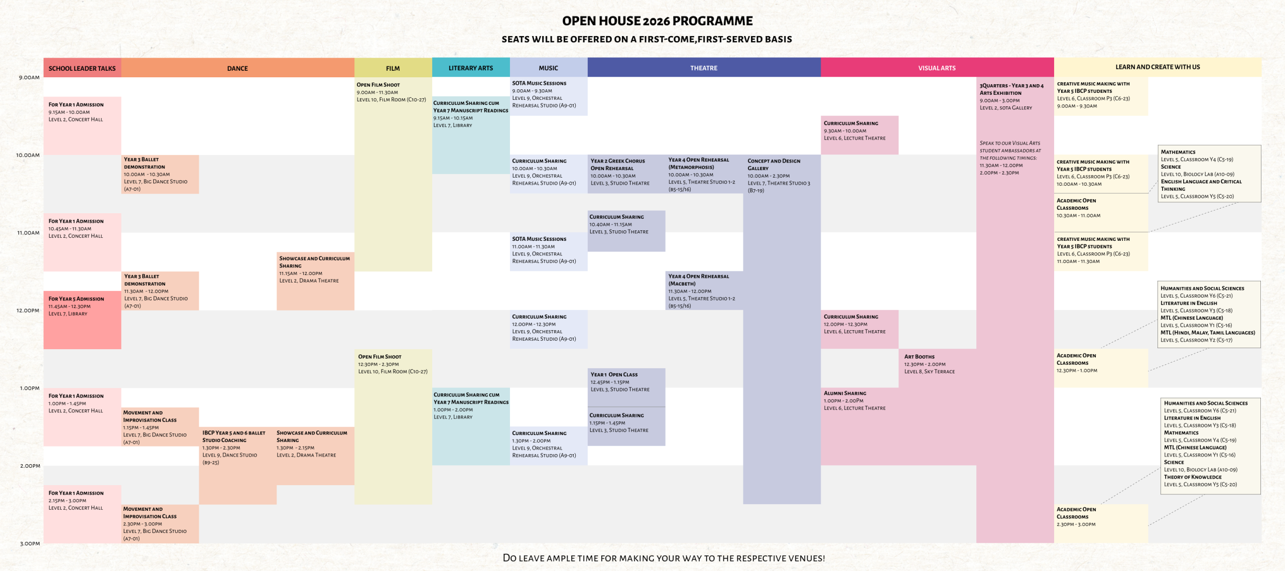 Join us on 11 April 2026 and take the opportunity to learn more about our integrated arts and academic curriculum, speak to our students, alumni and parents, and go on a tour around the campus!